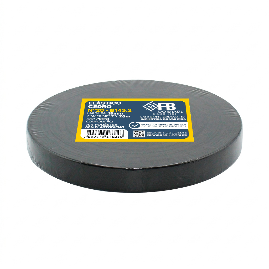CEDRO REINFORCED INSERT ELASTIC Nº 20 19mm BLACK 25m