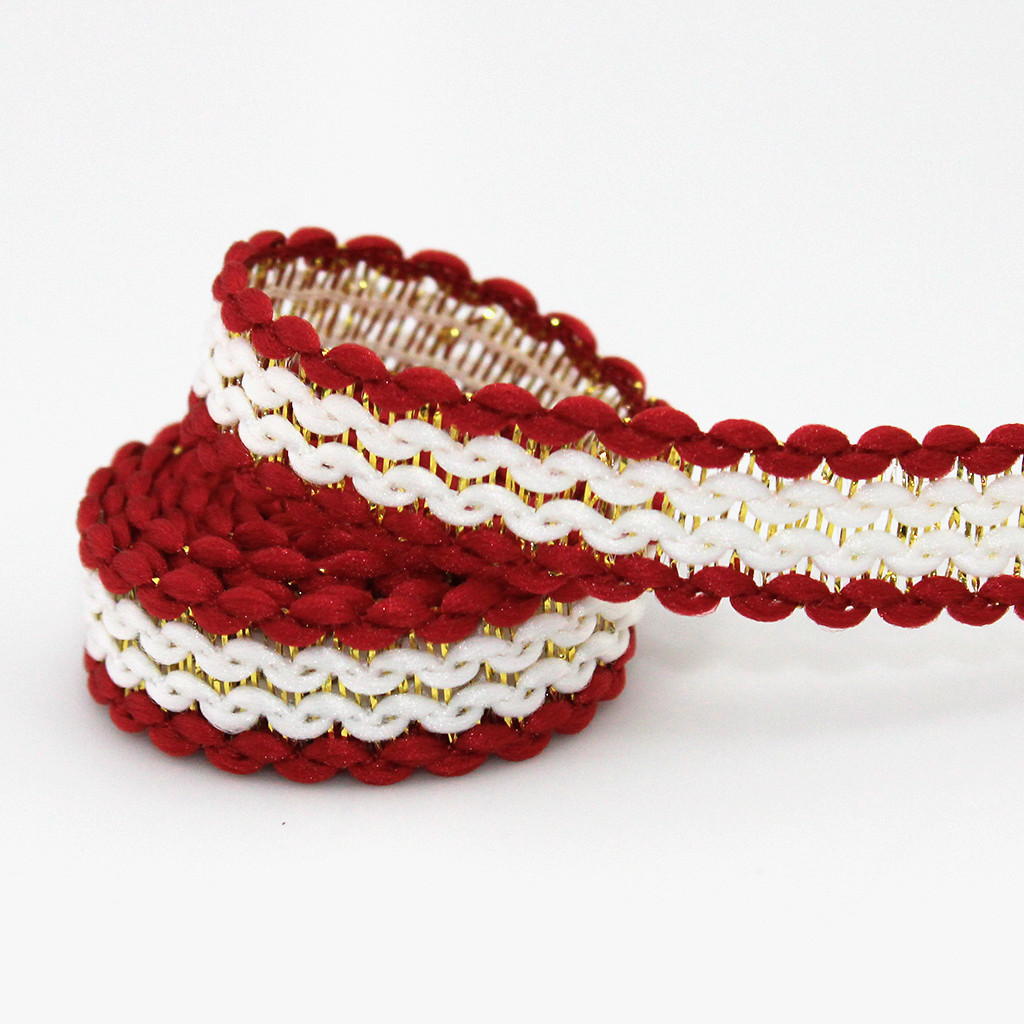 CINTA RÍGIDA ZIG ZAG RUBY 1,3cm CRUDO/ROJO/ORO 50m