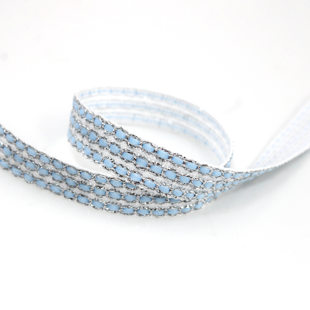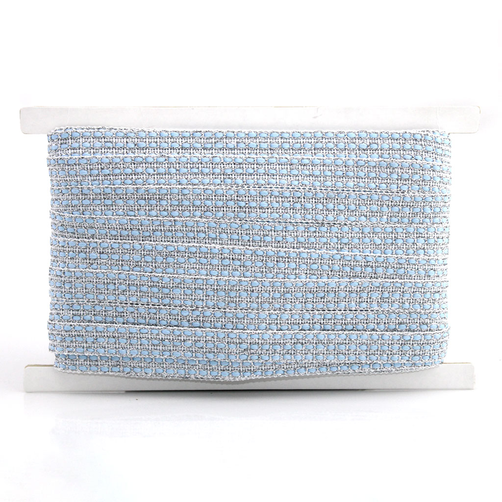PASAMANERÍA MIÇANGA TRIPLA 1,4cm CRUDO/PLATA/AZUL CIELO 20m