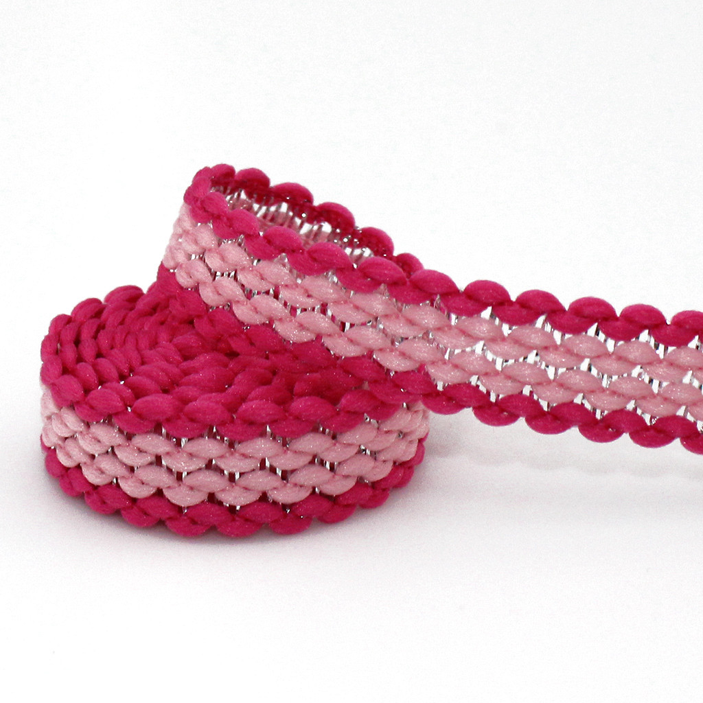 RUBY ZIG ZAG RIGID RIBBON 1,3cm PINK/BABY PINK/SILVER 50m