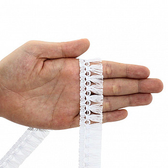 FRINGE TASSEL 2cm WHITE 10m B335.1 Fringe Tassel Width: 2cm Color: White Composition: 100% Cotton Pack: 10 Meter... Brand: FB DO BRASIL Add to cart Add to cart FRINGE TASSEL 2cm WHITE 10m Fringe Tassel Width: 2cm Color: White Composition: 100% Cotton Pack: 10 Meter Piece Application: Ideal for finishing bars and sleeves. FB Catalog: Classic