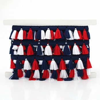 PENDANT FRINGE 2,8cm DARK BLUE/RED/WHITE 10m MF757.M3 Pendant Fringe Width: 2,8cm Color: Dark Blue/Red/White Composition: 100%... Brand: FB DO BRASIL Add to cart Add to cart PENDANT FRINGE 2,8cm DARK BLUE/RED/WHITE 10m Pendant Fringe Width: 2,8cm Color: Dark Blue/Red/White Composition: 100% Polyester Packaging: 10m Piece Application: Ideal for finishing barrettes and can also be applied in layers. FB Catalog: Children's Collection 2025