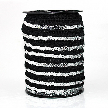 WAVY SEQUINS PIPING LACE 2,1cm BLACK/SILVER 50m M475.M1 Wavy Sequins Piping LaceWidth: 2,1cm Color: Black/SilverComposition: 78% Polyester 22%... Brand: FB DO BRASIL Add to cart Add to cart WAVY SEQUINS PIPING LACE 2,1cm BLACK/SILVER 50m Wavy Sequins Piping LaceWidth: 2,1cm Color: Black/SilverComposition: 78% Polyester 22% PolyvivylPackaging: 50m PieceApplication: Ideal for being applied between fabrics and in finishes, the braided piping was designed so that the braid detail can be used on both sides, eliminating the worry about which side should be sewn. FB Catalog: Collection 2026/2