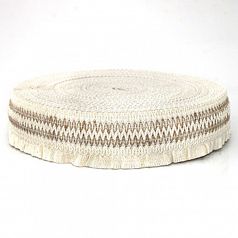RUFFLED ZIG ZAG RUSTIC ELASTIC 5,1cm RAW/YUTE 25m M434.M1 Ruffled Zig Zag Rustic Elastic Width: 5,1cm Color: Raw/Yute Composition: 68% Cotton 13%... Brand: FB DO BRASIL Add to cart Add to cart RUFFLED ZIG ZAG RUSTIC ELASTIC 5,1cm RAW/YUTE 25m Ruffled Zig Zag Rustic Elastic Width: 5,1cm Color: Raw/Yute Composition: 68% Cotton 13% Poliamide 12% Elastodiene 7% Yute Stretch: 80% to 110% Packaging: 25m piece Application: Ideal for tops, straps and waistbands. FB Catalog: Collection 2026/1
